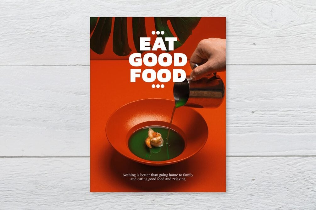 Eat Good Food is a modern cookbook template, designed so you can build your own creative document. It contains 40 pages and covers all important sides of a recipe cookbook with space for ingredients, for methods, small highlights and strong imagery.